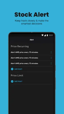 Stock Alerts keep users informed with live stock ticker updates every 15 minutes, 30 minutes, 1 hour, or 2 hours, depending on their preference. This feature helps users manage their stock investments efficiently and effortlessly.