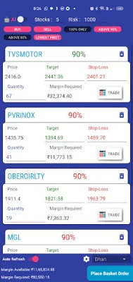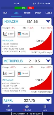 Live Stock Tips and Intraday Tips are provided through this application, along with detailed Stock Analysis. This makes it a valuable tool for quickly identifying profitable stocks. The app uses advanced algorithms to generate Auto Trading Signals, which are constantly scanning the Indian stock market to select the best stocks for Intraday Trading. The Signal Strength feature calculates the confidence level of each stock's signal in real-time, based on the current stock price. This information is continuously updated as prices change, and users can track these changes through charts and view the last update time. This ensures that users have the most up-to-date information to make informed trading decisions. The app offers various features, including Auto Scanning, Signal Strength display, real-time market trend and buyer vs. seller strength indicators, and monitoring of key indices such as NIFTY, BANKNIFTY, FINNIFTY, CNXIT, CNXINFRA, CNXPHARMA, and more. It also provides insights into the strategies behind signal strength generation and offers real-time stock prices and signals. Users can access technical indicators and drawing tools for live chart analysis with just one click. The app also offers signal sorting, identifying top gainers and losers with real-time signal strength, and a money management tool to help manage risks effectively. It also features various Pivot Point Calculators and supports seamless trading with Zerodha, Upstox, and Aliceblue. The app also offers a Pro Subscription for high refresh rates and faster signals, along with a detailed user guide on effectively using the signals. Some of the app highlights include OPEN HIGH LOW Screener, OPEN RANGE BREAKOUT (ORB) Screener, PREVIOUS HIGH LOW CLOSE Screener, Pivot Point and Fibonacci Calculators, Stock and Chart Analysis, Future and Options (FNO) Screener, Position Size Calculator, Stock Support and Resistance Levels, Auto Intraday Stock Calls, Market Trend Analysis, ALGO Trading Strategies, Market Trend Indicator Chart, and Buyers vs. Sellers Chart. However, the app also comes with a risk warning, stating that day trading is very risky and may not be suitable for everyone. Trading can result in losses that exceed investments, and users should only invest what they can afford to lose. It is also important to note that all signals are generated automatically and may not always be accurate. The app is not responsible for any losses incurred while using these signals, and users engaging in live trading based on these signals are fully responsible for their trading decisions.