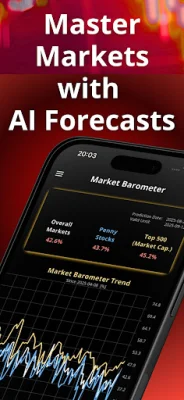 The app is not a financial advice or brokerage service, but rather a simulator and toolkit for users to make their own decisions. It offers virtual trading with thousands of stocks and ETF coverage, access to NASDAQ and NYSE, technical analysis tools, and daily insights such as signals, AI forecasts, and market barometer views.