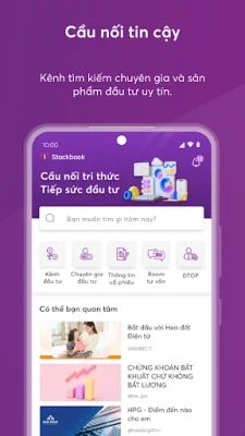 Việc tìm kiếm chuyên gia tư vấn uy tín cũng trở nên dễ dàng hơn với Stockbook. Ứng dụng này cung cấp cho bạn danh sách các chuyên gia tư vấn có uy tín và chất lượng, giúp bạn có thể lựa chọn người phù hợp với nhu cầu và mục tiêu đầu tư của mình. Bên cạnh đó, bạn cũng có thể tìm kiếm các kênh tài sản đầu tư phù hợp với tình hình tài chính của mình thông qua ứng dụng này.