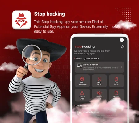 Our Stop Hacking: Spy Scanner App is a comprehensive tool designed to protect your mobile device from harmful spyware and surveillance software. It offers a range of features including a list of breached websites, app inspection, admin app monitoring, hidden app detection, device advisor, device testing, battery information, about phone, and permission manager. With this app, you can ensure the security and privacy of your device and personal information.