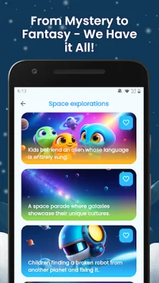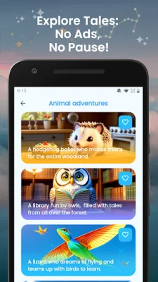 Storia is an innovative app that uses AI technology to generate personalized English stories for kids. With each use, the app offers new and exciting adventures, making it like having a personal storyteller in your pocket. These stories not only provide entertainment but also teach valuable lessons about courage, kindness, and friendship. The app is designed to be engaging and easy to understand, with captivating stories and pictures. It also offers a variety of categories, including bedtime stories, animal stories, inspirational and motivational stories, Panchatantra stories, life and biography stories, educational stories, comical stories, moral tales, fictional stories, fantasy stories, and fairy tales. This allows children to explore different genres and expand their vocabulary while enhancing their creativity. One of the main benefits of Storia is its endless library, which includes classic fairy tales and short stories in English. The app also offers AI narration and DIY audiobooks, making it perfect for busy parents. Additionally, Storia promotes creativity and education by allowing children to generate their own inspirational stories. Storia is a safe and user-friendly app, providing an ad-free environment and a user-friendly interface. It also offers reading enhancement through interactive animations and engaging characters. The app offers both free and premium content, allowing users to start with free kids audio stories and unlock more tales with vivid illustrations. Storia is more than just a bedtime stories app; it's a gateway to realms of creativity, learning, and enjoyable sleep tales. Download Storia now and experience the enchantment! If the app brightens your child's world, the creators would greatly appreciate a glowing 5-star review. If you need any assistance, you can reach out to the support team at [email protected]. Let's embark on writing the next chapter together!