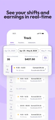 This application allows users to have control over when they receive their paychecks. They can choose the frequency and timing of their payments, giving them more flexibility and control over their finances. With real-time updates, users can easily keep track of their shifts and earnings, making it easier to manage their budget and plan for the future.