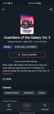 Effortlessly manage your watchlist with our intuitive feature. Organize your watchlist by genre, release date, or streaming provider, and receive personalized recommendations based on your preferences. With our app, staying on top of your entertainment queue has never been easier.