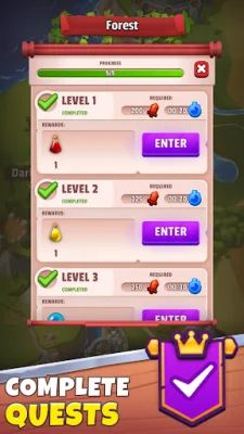Prepare for epic raids and battles as you fight against robbers and formidable bosses. Improve your fighting skills and become a true knight capable of protecting your settlement. Defeat bosses in epic clashes and collect magical rewards. And don't forget the ultimate goal: saving the princess from the clutches of the evil king.