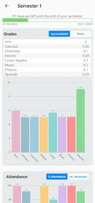 SchoolMate also offers various calculators to help you determine the grade you need to pass or achieve a certain final grade. This takes the guesswork out of your academic goals and allows you to plan accordingly. Additionally, the app provides statistics for each school term and overall course, with charts for grades, attendance, agenda, and schedule. This allows you to easily track your progress and identify areas for improvement.