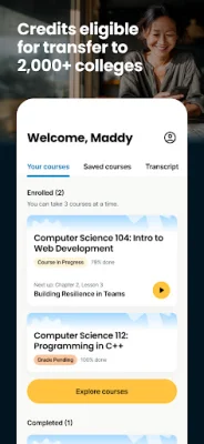 What sets the College Saver plan apart from other options is its extensive course catalog, with over 200 courses across lower and upper division. These courses are accepted at over 2,000 colleges nationwide, with guaranteed transfer to 50+ partner schools. The self-paced, video-first learning is designed specifically for working adults, and you can take unlimited courses and final exams per month (plan limits may apply). When you're ready to transfer, you can also expect fast transcript delivery.