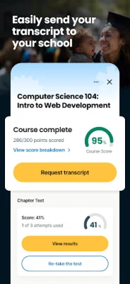 The Study.com app offers a variety of features to help you succeed. You can watch lessons, take quizzes and chapter tests, track your progress, and request transcripts all within the app. Plus, you can pick up where you left off on any device, whether it's your desktop or mobile device.
