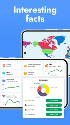 StudyGe is suitable for people of all ages and offers a variety of interactive elements to make learning more engaging and enjoyable. In addition to quizzes and games, the app also provides detailed information about each country, such as its language, population, currency, and form of government. This makes it a comprehensive resource for anyone looking to learn more about the world.