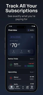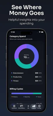 The app is designed to be simple and powerful, with features such as quick-add for popular services, automatic price and cycle detection, and a clean and modern interface. It also offers a dark mode for those who prefer it.