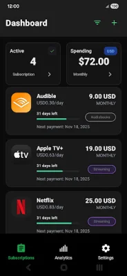 Subscription Manager is an all-in-one solution for keeping track of your recurring payments. With this app, you'll never forget about your Netflix, Spotify, Adobe, or any other subscriptions again. It offers powerful analytics and smart insights to help you stay on top of your spending.