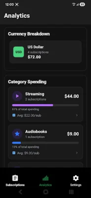 The app's powerful analytics feature includes visual pie charts that show your spending distribution and track spending patterns across different payment cycles. You can also set budgets for weekly, bi-weekly, monthly, quarterly, and yearly periods and monitor your budget usage with progress indicators. Additionally, you can view a currency-wise breakdown of all your subscriptions.