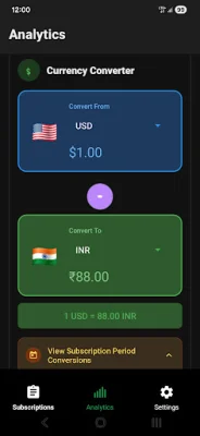 Subscription Manager also offers multi-currency support, allowing you to track your subscriptions in various currencies such as USD, EUR, GBP, INR, JPY, CAD, and AUD. It automatically converts currencies and provides a breakdown of your spending by currency with detailed analytics. You can also set your preferred default currency for convenience.