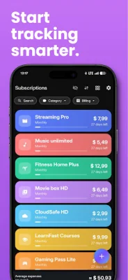 Subtrack offers a variety of features to make managing your subscriptions a breeze. You can track an unlimited number of subscriptions, whether it's for streaming services, software, fitness programs, or utilities. With smart reminders, you'll never miss a payment or renewal again. And with a monthly expense overview, you can easily see exactly how much you're spending on your subscriptions.