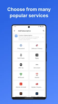 But Subtree is more than just a bill reminder or subscription manager – it also helps you discover new and enticing deals. Browse through a catalog of popular services and find subscriptions that align with your interests, all within the app.