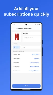 Say goodbye to the hassle of bouncing between different apps and websites to keep track of your digital payments. Subtree consolidates all your information into one convenient location. Whether it's managing Netflix, Spotify, or your monthly gym membership, we've got you covered.