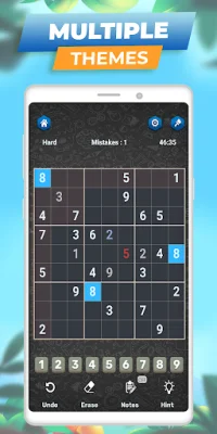 The app also offers various customization options, such as different themes and sound effects, to make the game more enjoyable for players. There is also a notes mode, highlighting duplicates, and the option to turn on or off highlighting identical numbers, making it easier to avoid mistakes and improve accuracy.