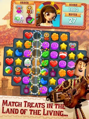 Help Manolo, Maria, and Joaquin get ready for an amazing fiesta by collecting delicious treats and beautiful charms! Travel through vibrant worlds like the Land of the Remembered and the Land of the Living in this exciting game.