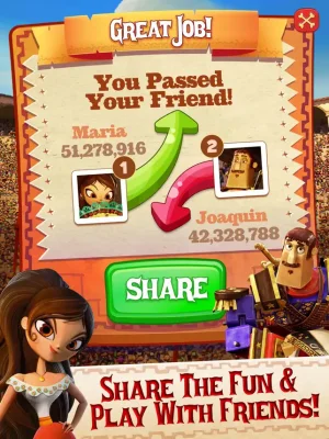 Indulge in sugary sweet churro challenges and use fun power-ups like 'Chuy Charge' and Piñata Bombs to help you along the way. You can even connect to Facebook to send lives and gifts to your friends and share the fun!
