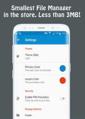 One of the key features of this file manager is its security. It allows users to set a password to protect their private files from unauthorized access. It also has a root file manager for advanced users to explore and edit files on the root partition of their phone's storage. This feature requires the phone to be rooted.