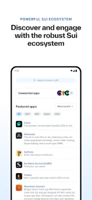 The application also offers powerful experiences for its users. This includes the ability to stake and earn SUI directly from their wallet, providing a convenient way to grow their assets. Users can also discover and connect with a variety of Sui apps, expanding their options and opportunities within the platform. Furthermore, the application allows users to manage their Sui NFTs in one centralized location, making it easier to keep track of their digital assets.