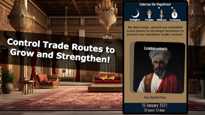 Sultan Simulation offers a unique blend of historical accuracy and gameplay, allowing you to relive the past and experience the challenges and triumphs of the Ottoman Empire. You will have the opportunity to interact with famous historical figures and events, adding a sense of authenticity to your gameplay. This application is not only entertaining, but also educational, as it provides a deeper understanding of the history and culture of the Ottoman Empire.