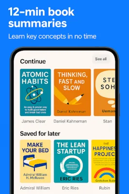 Summedup is perfect for individuals looking to build their personal growth plan, develop a self-growth journey, master time management and leadership skills, and learn through microlearning and spaced repetition. It is also a great tool for discovering the best self-improvement books and reading or listening while commuting or during short breaks.