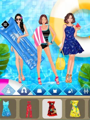 If you're looking for some fashion inspiration for your summer vacation, check out this awesome dress up game! Dress up three different dolls with a huge selection of summer clothes, perfect for the most fashionable beaches in the world. Be original and SEO-oriented as you mix and match different pieces to create the perfect summer look. So pack your bags and get ready to slay in style this summer!