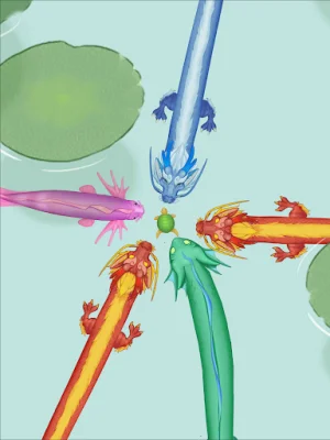 In this game, players control tadpoles and guide them to collide with smaller marine creatures in order to upgrade and eventually jump the dragon gate. Along the way, players can collect gold coins which can be used to purchase different skins for a more personalized experience.