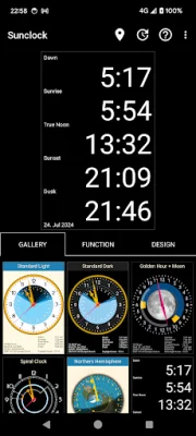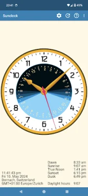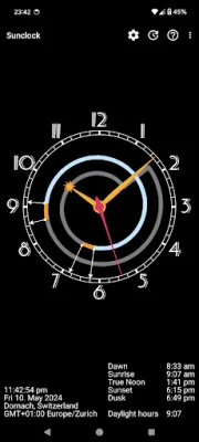 Sunclock also caters to users interested in cultural and religious times. The app supports a variety of time systems, including Horae Temporales, Roman Catholic Liturgy of the Hours, Hebrew hours, Islamic prayer times, Wadokei (Japanese clock), Chinese hours (时辰), old Arabic clock, Alaturka hours, Byzantine time, Roman time, and more. This makes it a valuable tool for individuals looking to stay connected to their cultural or religious practices.