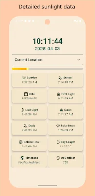 In addition to sunrise and sunset times, this app also provides details for dawn, dusk, and solar noon. This comprehensive information allows you to plan your day even more accurately and make the most out of every moment. And with support for multiple timezones, you can easily stay in sync with the sun's schedule no matter where your travels take you.
