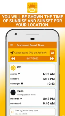 But our app offers more than just sunrise and sunset times. You can also find out the moonrise and moonset times, making it easier to plan a moonlit stroll or a night of stargazing. And with the GPS feature, you can easily find your current location and see the sunrise and sunset times for that area.