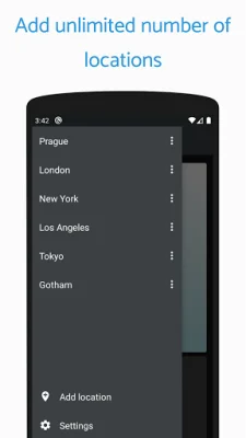 For those who need to keep track of multiple locations, there is an in-app product available for purchase. This Unlimited Locations feature allows you to add as many locations as you need, making it perfect for travelers or those with loved ones in different time zones. To purchase this feature, simply open the app's drawer and click on "Add Location".