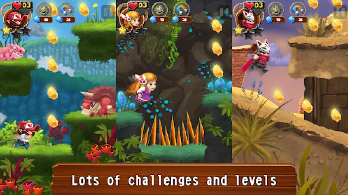 Super Jungle Jump is an exciting new adventure game that will take you on a journey through beautiful and immersive landscapes. With a brand new screen design, you'll be captivated by the stunning visuals and engaging gameplay. The game features four unique characters, each with their own special abilities and skills, allowing you to choose the one that best suits your playstyle.