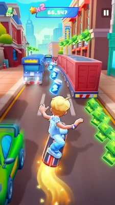 The game features a variety of super runners, each with their own unique abilities. You can choose from characters like David, Harley, Felix, and Angelina, and equip them with exclusive skills such as dashes, super jumps, and blasts to enhance your gaming experience. As you run, you can collect energy to power Felix's tech inventions and gain special abilities.