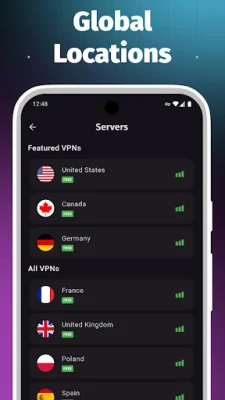 This application is a free VPN service that offers a variety of key features to enhance your online browsing experience. The first and most notable feature is that it is completely free to use, with no trials, payments, or hidden charges. This means that you can access all of its features without having to spend a single dime. One of the main benefits of this VPN is its global servers. This allows you to connect to servers all around the world, ensuring optimal speed and seamless browsing. Additionally, you have the option to choose your preferred country, giving you more control over your online experience. Another important feature is the enhanced security that this VPN provides. Your data is protected with strong encryption, keeping your online activity private and secure, even when using public Wi-Fi. This gives you peace of mind and ensures that your personal information remains safe. To extend your VPN session, you have the option to watch ads. Each ad you watch accumulates usage time, allowing you to have unlimited access to the VPN as long as you participate. This is a unique feature that sets this VPN apart from others. One of the most convenient aspects of this application is that no registration is required. You can start using the VPN instantly without having to sign up or share any personal information. This makes it quick and easy to get started and protects your privacy. Lastly, the user-friendly interface makes it simple and intuitive to connect to the VPN with just one tap. This means that even those who are not tech-savvy can easily use this application. Additionally, you can enjoy high-speed connections with unlimited bandwidth, making your online experience smooth and seamless. Overall, this free VPN offers a range of features that make it a top choice for those looking to enhance their online security and browsing experience.