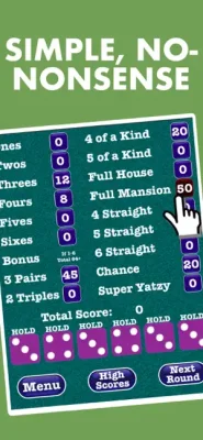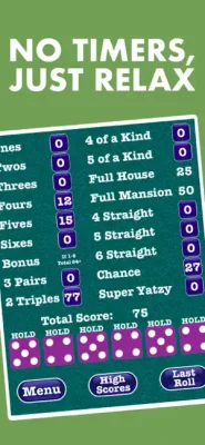 The game is simple to play, as you just need to tap on the dice to hold them. It also provides a clear display of how many points you would score for your current dice in each combination, allowing you to focus on your strategy. The dice are beautifully designed and easy to read. There are no timers, so you can relax and have fun without any pressure.