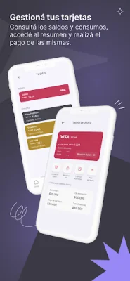 La aplicación también ofrece la posibilidad de gestionar tarjetas de débito y crédito, permitiendo a los usuarios realizar consultas de saldos, movimientos y pagos de manera rápida y sencilla. También se pueden solicitar nuevas tarjetas o bloquearlas en caso de extravío o robo.