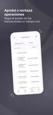 Una de las características principales de esta aplicación es la posibilidad de cambiar de empresa, lo que permite a los usuarios gestionar múltiples cuentas de diferentes empresas desde una sola plataforma. También cuenta con una bandeja de aprobaciones, donde los usuarios pueden revisar y aprobar transacciones pendientes de autorización.