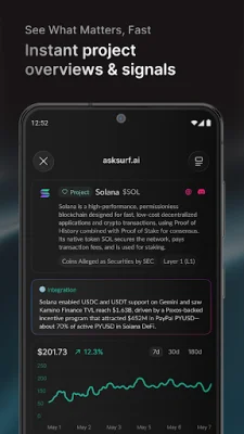 Surf is a powerful app designed for traders, analysts, airdrop farmers, and newcomers in the world of cryptocurrency. It aims to simplify the process of researching and analyzing various tokens and ecosystems by bringing together deep research, live market data, and on-chain analysis into one convenient platform. This eliminates the need to juggle between multiple DEX dashboards, X, and Telegram, making it easier for users to stay on top of the latest trends and opportunities in the market. One of the key features of Surf is its multi-agent research stack, which works across more than 40 blockchains and over 100,000 X accounts. This allows users to access a wide range of information and insights, including narratives, flows, and potential opportunities, before they become mainstream. As a result, Surf is already being used by leading funds and research firms, and has been proven to outperform generic chatbots in terms of accuracy for tokenomics, trend analysis, and project discovery. With Surf, users have the ability to run deep, structured research on any token or ecosystem, spot narratives and smart money across different chains and social platforms, and turn scattered documents, posts, and dashboards into clear and actionable playbooks. This makes it a valuable tool for those looking to stay ahead in the fast-paced world of cryptocurrency, whether they are interested in memecoins, halving models, or airdrop campaigns. In order to use Surf, users must agree to the Terms of Services and Privacy Policy, which can be found on the app's website. These policies outline the terms and conditions for using Surf AI and the protection of user data. Additionally, there is a Help Center available for users to access if they have any questions or need assistance while using the app. Overall, Surf is a comprehensive and user-friendly platform that aims to provide clarity and confidence to its users in the ever-changing world of cryptocurrency.