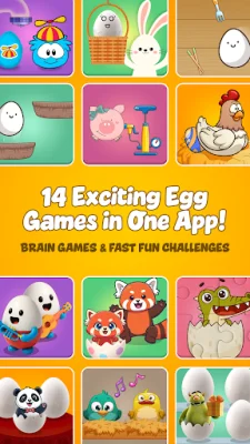 The app also offers six fast and cute games to play. In Color Pipe Catch, you must choose the right monster color to eat the egg. In Egg Catch Runner, you must move left or right to catch falling eggs in a basket. Other games include Egg Jump Baskets, Egg Roll Switch Lanes, Basket Pop Eggs, and Animal Egg Balloons.