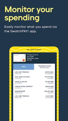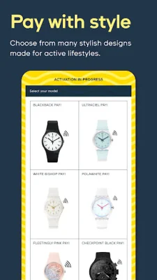 Our app offers a range of features that make paying with your SwatchPAY! watch a breeze. Simply bring your watch close to the payment terminal and your payment will be processed. Plus, with the added security of Visa and Mastercard verification, you can have peace of mind knowing your transactions are safe and secure.