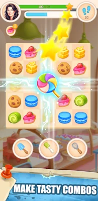 In this game, you will embark on a deliciously addictive match 3 puzzle adventure. Each swipe you make brings you closer to bakery bliss! You will swap, match, and crush your way through various mouthwatering challenges as you assist Emma and Lily in satisfying their customers' cravings.