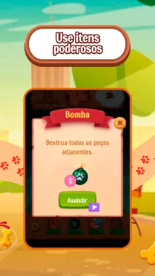 O jogo é muito divertido e fácil de jogar. Para começar, basta encontrar uma forma de colocar os doces de mesma cor lado a lado. Ao combinar vários doces, você cria um super petisco que causa uma explosão de sabores, o que deixa o Caramelo muito feliz.