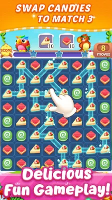 This application is a match 3 game that involves linking and matching three candies of the same color in order to blast and earn points. The game features a variety of tasty candies, color bombs, and other powerful boosters that can help players overcome various barriers and challenges. In addition, players can collect coins throughout the game to assist them in completing tough levels.