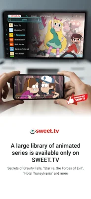 SWEET.TV is an online streaming platform that offers a variety of TV channels, movies, and animations in FullHD. With a subscription, users can access over 110 TV channels with catch-up and timeshift features, as well as a library of over 1,000 movies and animations. The platform also offers premieres from popular studios like Disney, Paramount, and Sony, available right after they are released in cinemas.