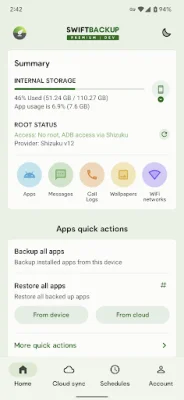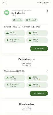 Swift Backup is a comprehensive app that allows you to easily backup and restore various types of data on your device. This includes apps, messages, call logs, and even applied wallpapers. For rooted devices, the app also offers the ability to backup and restore app data, special app data, and WiFi network configurations. Batch restoring of apps is supported for rooted devices or those with the Shizuku service running.