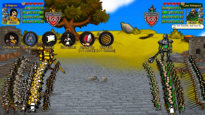 The game's epic campaign spans 9 chapters and 49 missions, each told from the perspective of one of the eight crusaders. Players can engage in turn-based tactical combat in classic 2D fashion, using a variety of tactics such as firing arrows, casting spells, taunting enemies, or sending out cavalry. They can also summon powerful creatures like wizards and colossi to aid their army, including legendary figures like The Grail Knight and the titan Spheracles.