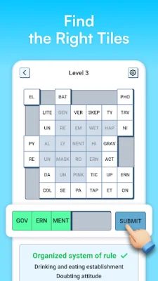 One of the standout features of Syllatiles is its ability to stretch your brain and improve your problem-solving skills. By piecing together fragmented words, you'll not only solve puzzles but also expand your vocabulary and become a more effective communicator. It's a comprehensive word game that offers both mental exercise and learning opportunities.