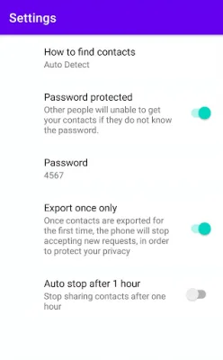 This application allows you to easily transfer your contacts from one phone to another without having to worry about your privacy being compromised. This is because the transfer is done through a direct connection between the two phones, using the same wifi network. This means that no third party servers are involved, ensuring that your personal information stays safe and secure.